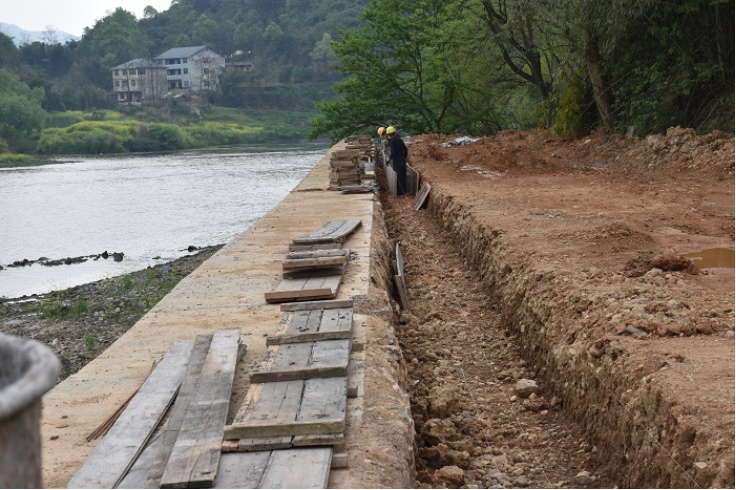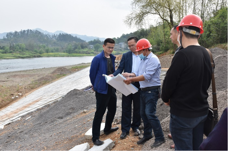 怀化水务集团领导杨秀和赴中方县牌楼镇毛家保护圈岸坡整治工程项目工地检查防汛、防疫、复工复产等方面工作开展情况。