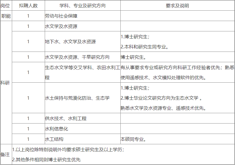 水利部牧区水利科学研究所位于内蒙古自治区首府呼和浩特市,隶属中国水利水电科学研究院。重点研究领域有:水资源与水环境、灌溉与排水、清洁能源(太阳能、风能等)与供水、草原水土保持与生态、地下水科学、抗旱减灾工程技术等学科领域。根据工作需要,2020年公开招聘工作人员9名,现将有关事项公告如下: